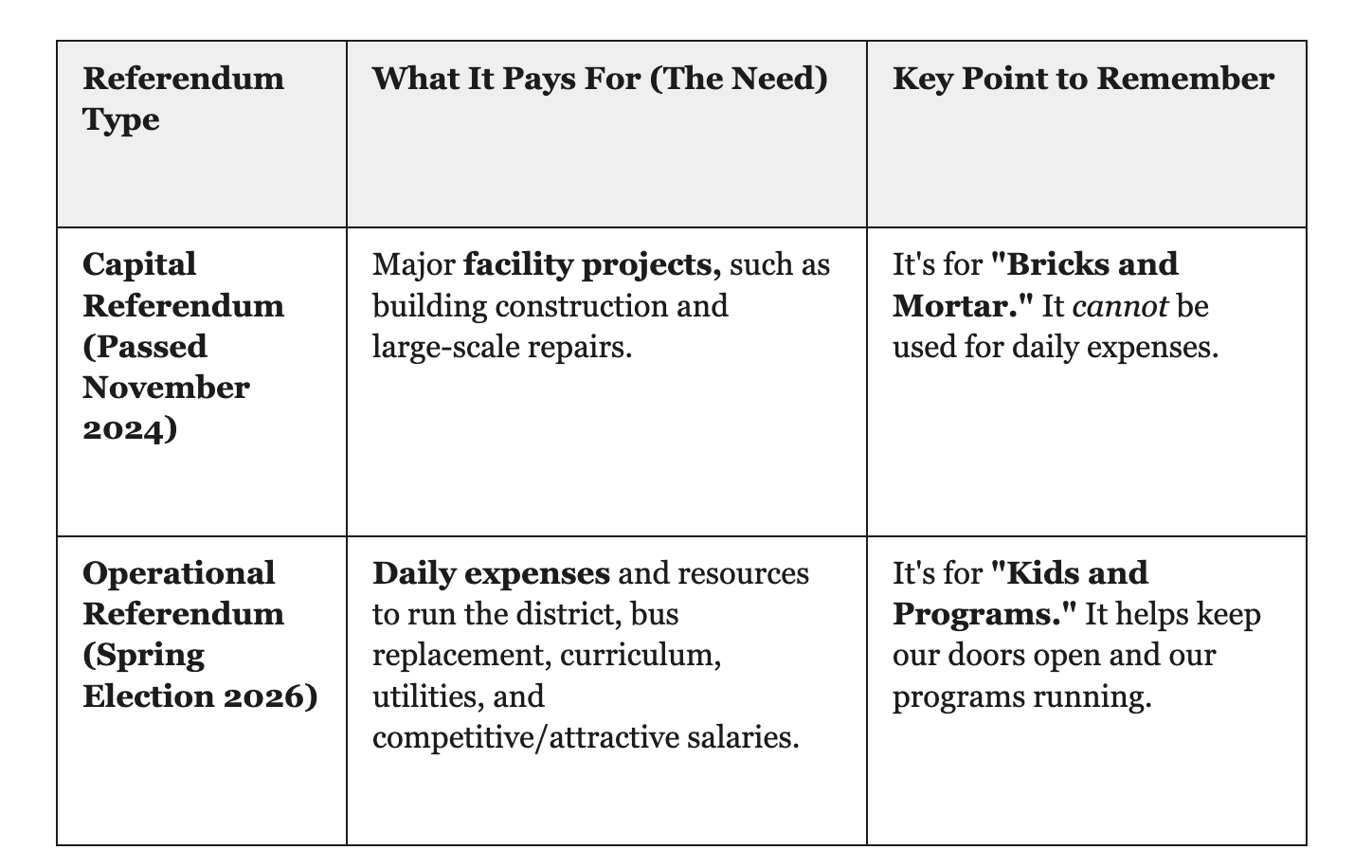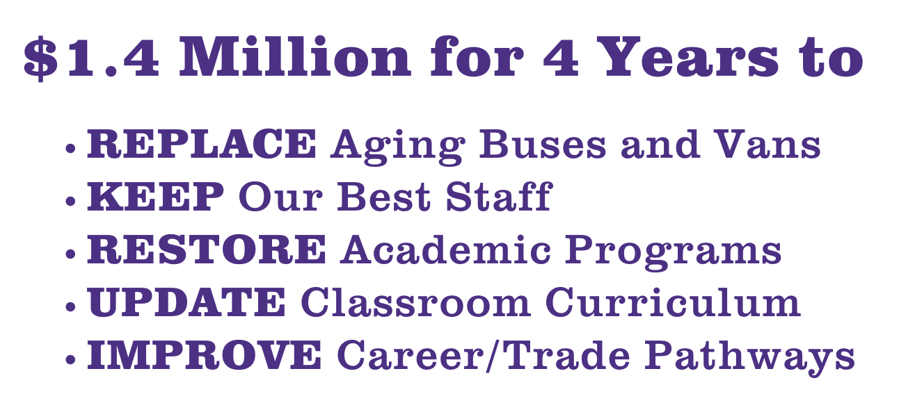 ****The one thing the November referendum doesn’t cover is our daily "Operational" budget—things like transportation, staffing, classroom supplies, student programs, technology, etc.