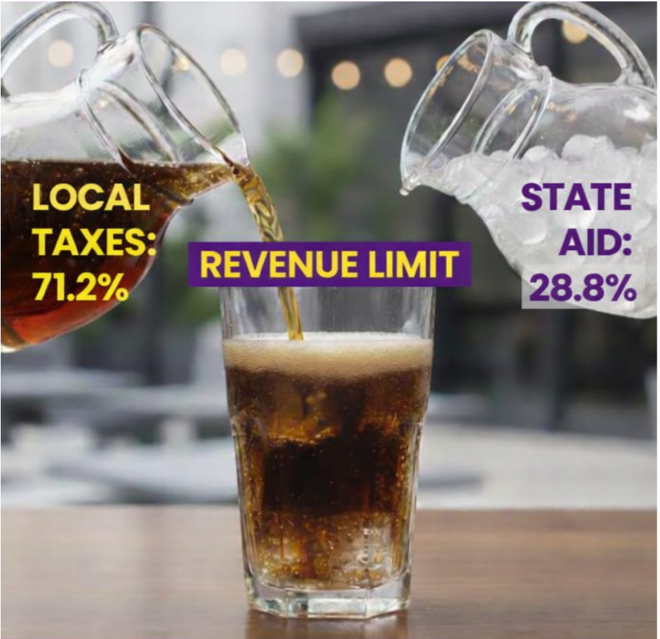 The glass represents the district’s revenue limit. This is the maximum amount of money a school district is allowed to raise each year to pay for school expenses like teachers, transportation, supplies, and building costs.