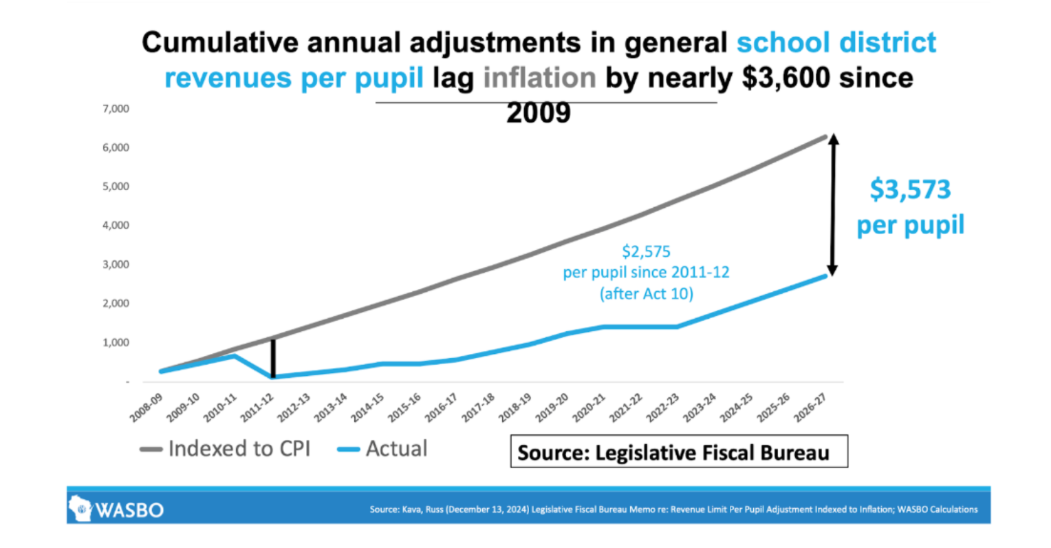 In 2009, the state stopped adjusting revenue limits for inflation. While the cost of operating schools has continued to rise, revenue limits have not kept pace. As a result, Westfield now has approximately $3,573 less per student in revenue authority than it would have if inflation adjustments had continued—equaling about $3.8 million less for our district this year alone.