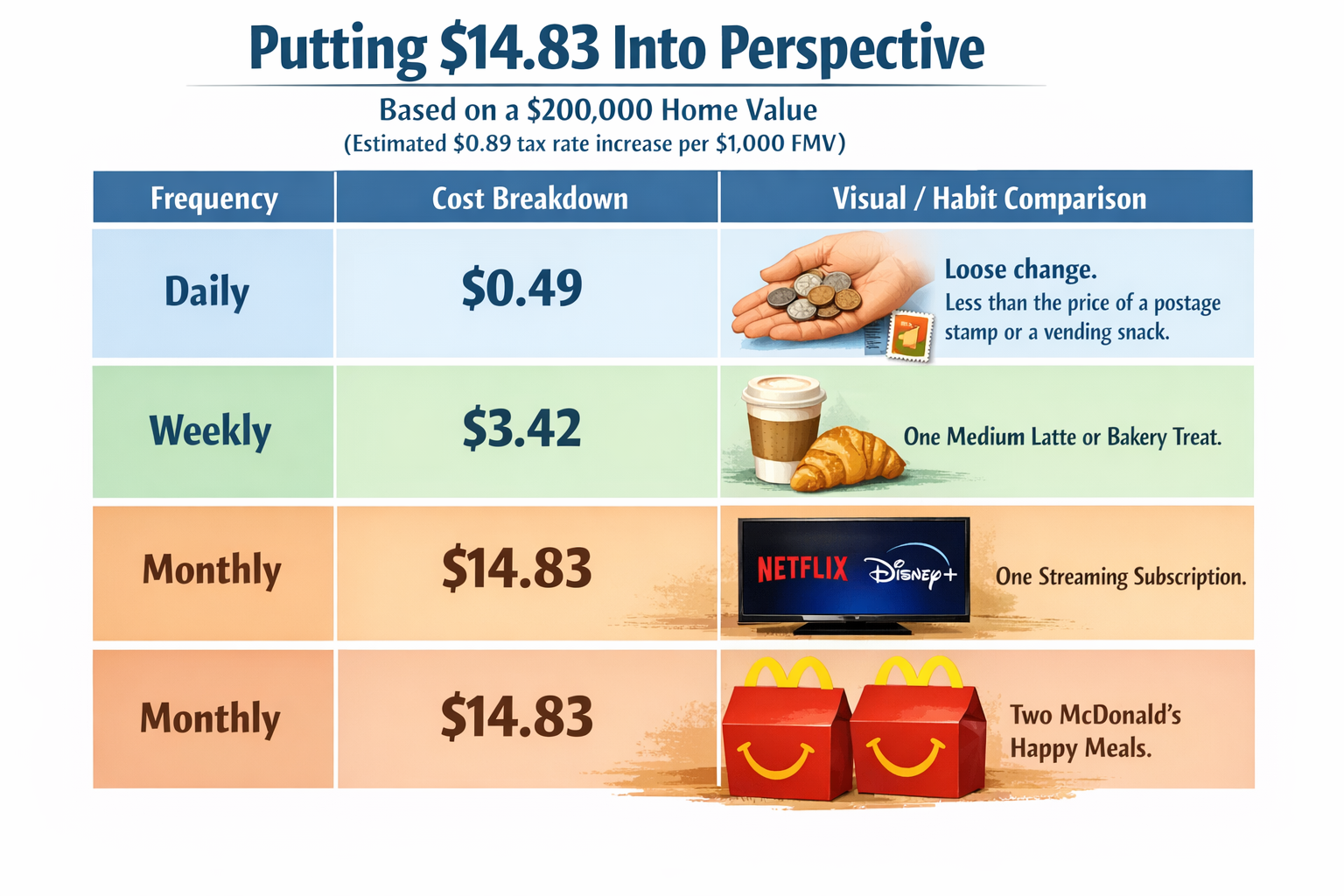 The shortfall pictured equates to $3.8 million in revenue for this year alone. Notice we are asking for $1.4 million, based on community feedback. Consequently, the District will still need to make cuts.